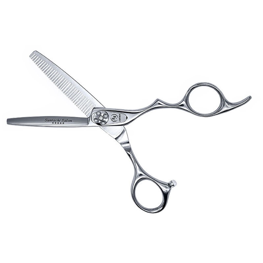 Виды срезов и техника: Филировочные ножницы Suntachi Salon VD-R-5535 5 Класс в размере 5,5 дюймов с верхним расположением филировочного полотна снимают 30%. Особо острая кромка лезвия, в комбинации с 35-ю прямыми зубцами с просечкой, максимально подходит под классические техники тушевки и филировки. Модель является универсальной и максимально подходит мастерам как с опытом, так и начинающим. Подходят для мужских и женских стрижек как мастерам с опытом, так и начинающим.